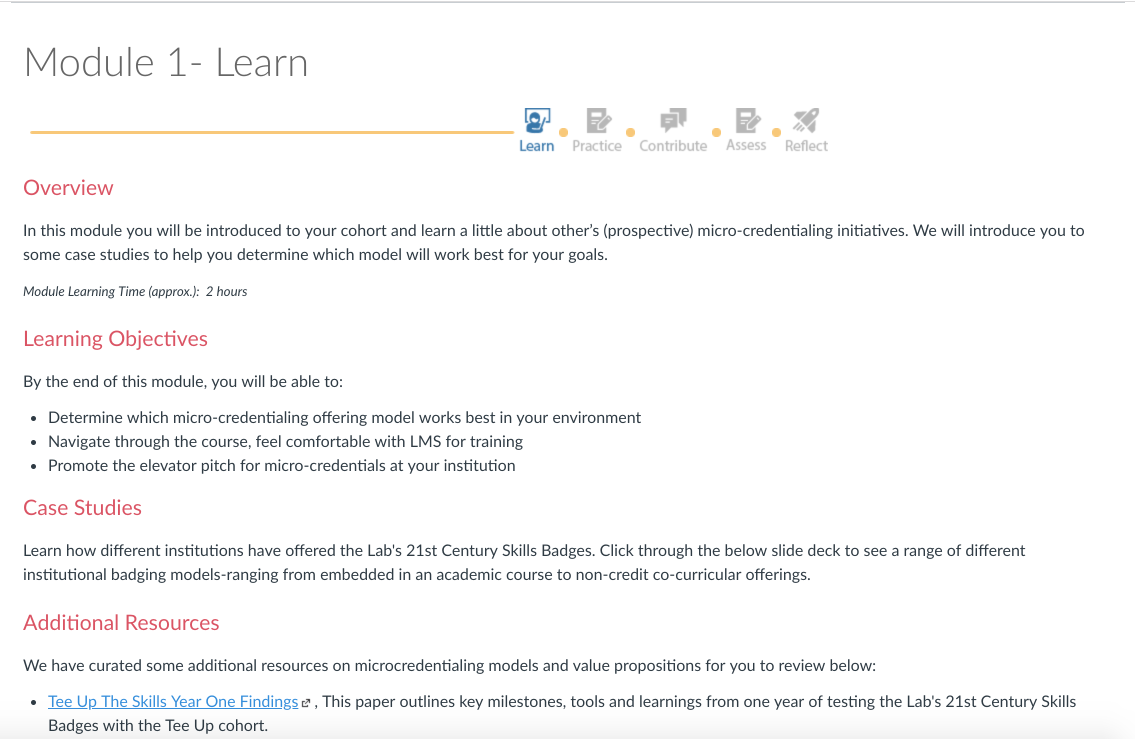 When I joined the Lab in 2017, they had identified the suite of 8 competencies by working with subject matter experts, employers, and academics. They had even run several successful pilots with universities such as Georgetown and University of Arizona. There was demand from other higher ed institutions that wanted to deploy these micro-credentials, but the process was not yet documented in a way to be shareable.